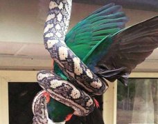 它用身体缠住鹦鹉 首先将它的头吞进去 又是澳洲!经常在澳洲生活的人对于他们周围出现的各种各样的动物已经见怪不怪了。但是下面这位男子出门见到的动物还是让他吓了一跳,究竟这名男子见到什么样动物呢,我们一起来看一看吧 他竟然看见了一条巨蟒悬挂在他窗...