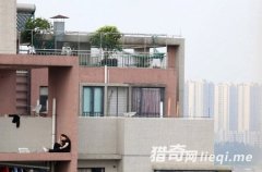 2015年3月17日,广东东莞,一女子爬上南城区西平社区金色华庭北门左侧19楼楼顶,欲跳楼轻生。在与救援人员对峙近4个小时之后,9点44分左右,该女子最终被劝离,成功解救。该女子声称其家人没有陪伴其过生日,欲跳楼轻生。 图为该女子坐在楼顶欲跳楼。分页...