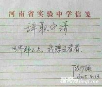 最有情怀的辞职报告 4月14日一早,一封辞职信引发热评,辞职的理由仅有10个字:世界那么大,我想去看看。有人评这是史上最具情怀的辞职信,没有之一。经采访得知,作者为2004年7月入职河南省实验中学的一名女心理教师。如此任性的辞职信,领导最后真批准了。...