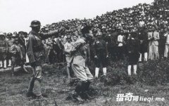 日本投降后,中国在一些主要城市设立军事法庭,对2357名日本乙、丙级战犯进行审判。审判的结果是149名战犯被处以死刑。图为1947年6月11日,南京雨花台刑场,日军战犯松本洁伏刑时,行刑士兵向其头部开枪的场景。 分页标题 上海军事法庭1946年4月开庭审...