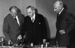 科学家们在防范别国的心理下造出了原子弹,接下来掌握它的就将是政客,对它们的使用就将更加远离海森堡和西拉德曾经遵循的对人类的共同责任。 1949年,苏联爆炸了自己的原子弹,震惊世界。一个新的核大国诞生了,美苏对抗进入了新阶段。 分页标题 在核...
