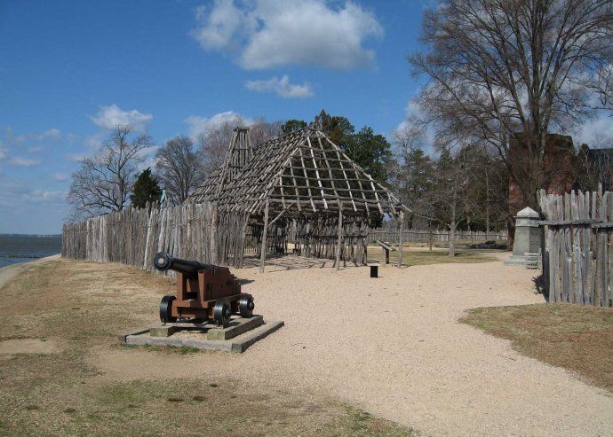 1607年5月14日,在沿河上溯50公里的地方,英国人成功建立了第一块殖民地,命名为詹姆斯敦(Jamestown)。这里向北180公里,就是后来的美国首都华盛顿。为了防范印第安原住民的袭击,这些欧洲人用木栅墙和火炮圈起了领地。此后英国人在北美东海岸建起了13块殖民地,大批罪犯流放北美洲。当欧洲人踏足美洲大陆后,两千万印第安人惨遭屠戮,印加、阿兹特克、玛雅三大美洲古文明从此绝迹。三百年后(1907年),在詹姆斯敦东南50公里,当初英国殖民者登陆美洲的地方,美国开始建造世界最大的海军基地——诺福克海军基地,至今常年驻泊五艘核动力航母。旁边的纽波特纽斯造船厂,是美国唯一的航母造船厂(建于1886年)。